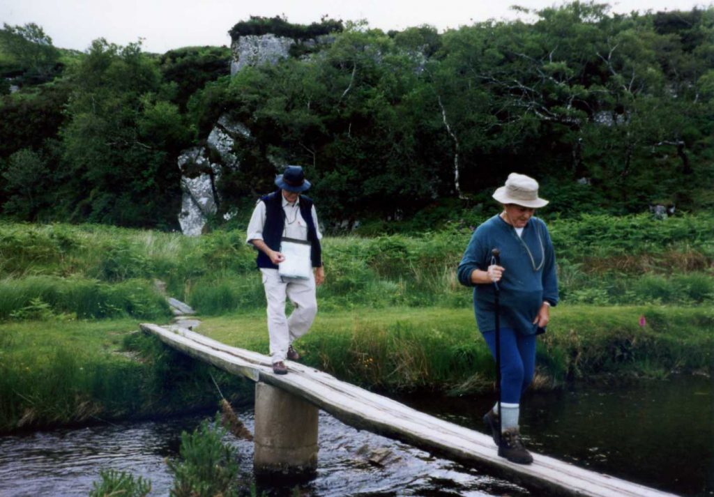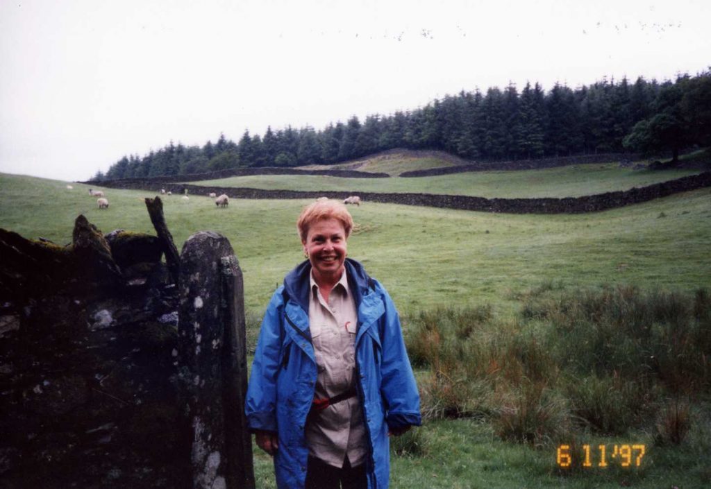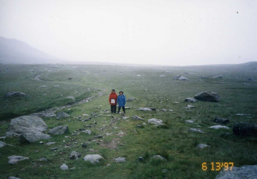 supposed to be 6 or 7 miles – more like 10. Lunch at top then route finding over boggy area. Followed Julia and was chatting and came down to flats off trail. Three went back up to look for us but saw us so came down too. Pat went thru boggy area and the land he was on swayed as he walked across it! Country is wild and beautiful. Not much sun, but not much rain either. People in group get along well. Ages from 34-60? Some non-professional musicians and story teller. At end of hike went to Climbers Inn pub.