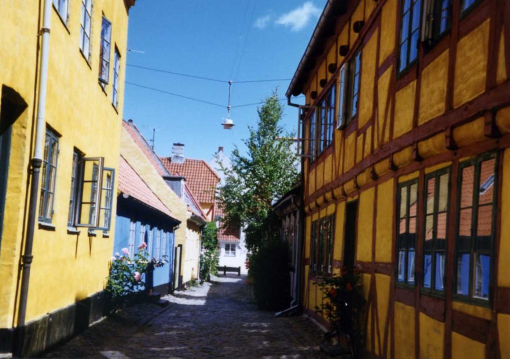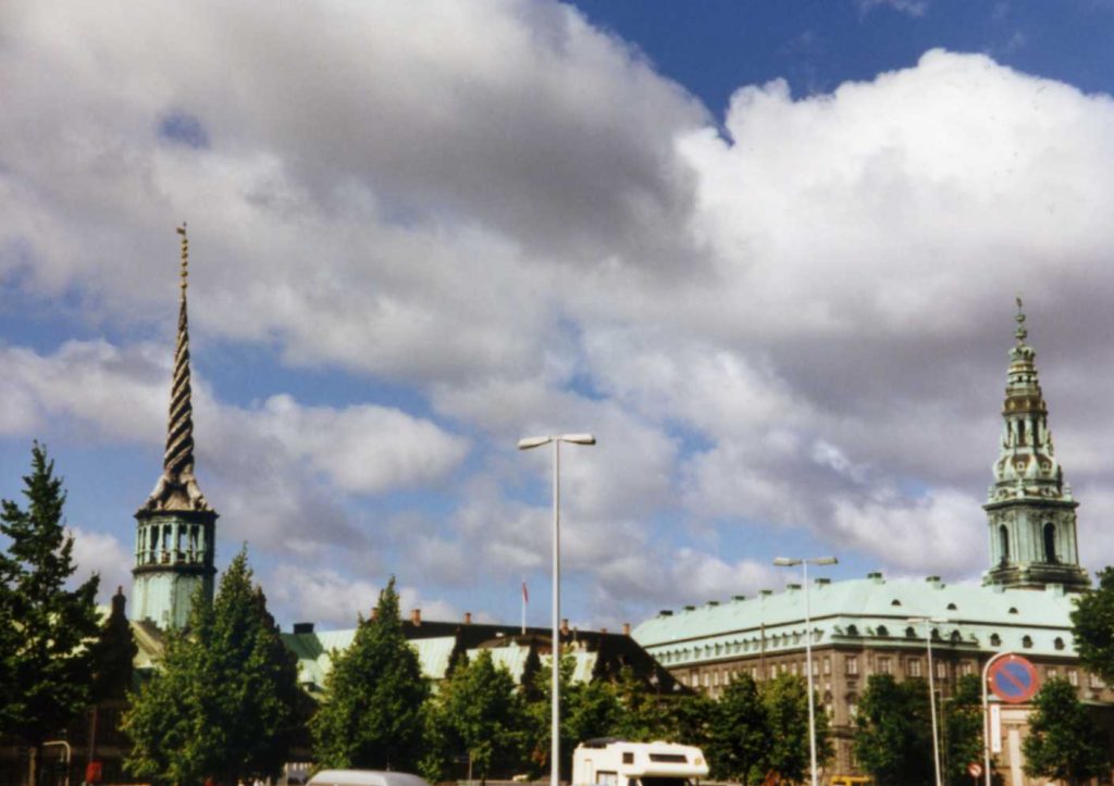 Took train to Helsignor which takes a connection from Shakespeare and Hamlet and Elsinor. It probably has no connection at all, but is a town close across the water from Sweden. People come over from Sweden to buy beer and take it home. Toured castle and went on by train to Hillerod. Walked thru town and took a boat around a small lake. Didn’t go thru castle. Train back to Copenhagen and went to dinner at Joanna. Ate on street (not sidewalk) with one-way traffic right behind Charlie.