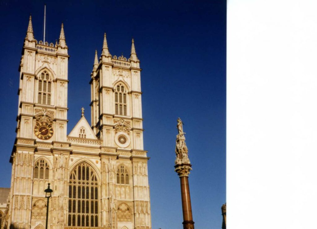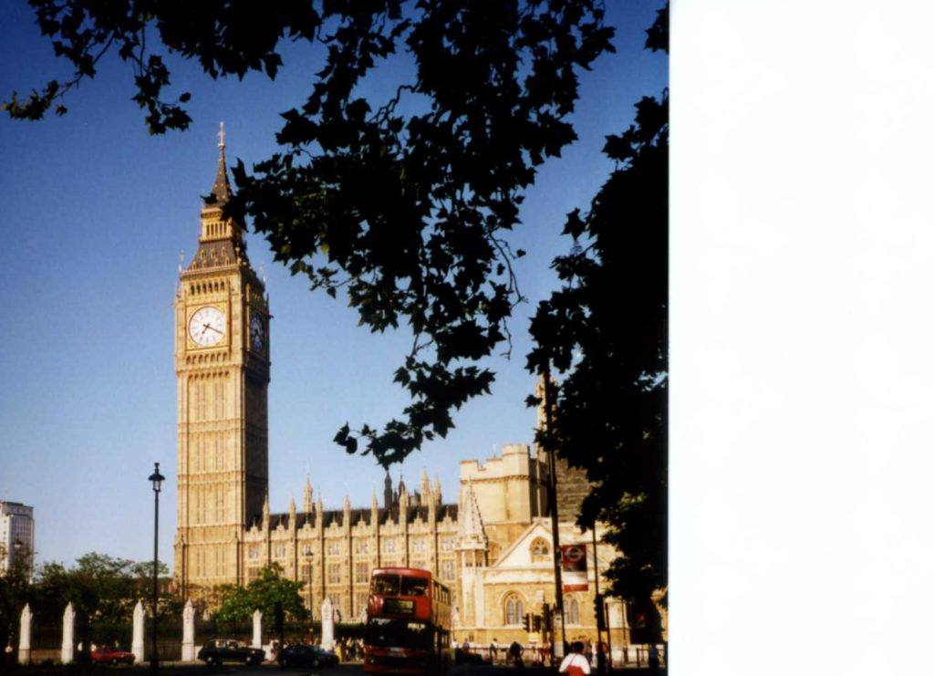 Walked on south side of river (Thames) to London Bridge and re-crossed river. Back on train to Westminster and saw Abbey (outside). Big Ben (outside) and part of Parliament (outside).
